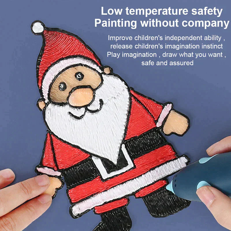 This 3D printer pen features a low temperature design which makes it not easy to harm your hands and is perfect for kids to use. Comes with paper molds that can guide kids to draw.